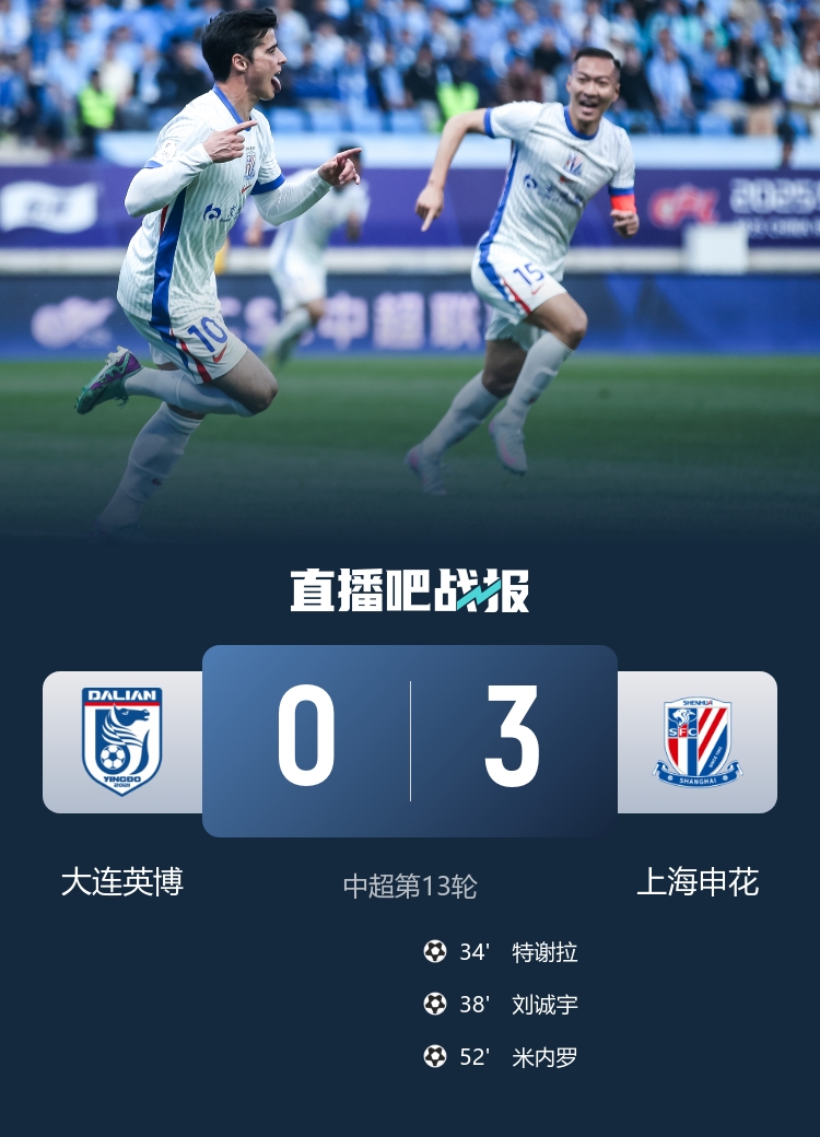 大连英博开场很猛,马莱莱对金顺凯持续冲击。申花在顶过了对手的三板斧后,夺回了中场控制权,也掌控了比赛。特谢拉的进球也非常重要,稳定住了军心。刘诚宇和米内罗延续了进球运,又取得了进球。目前实时榜单,米内罗已经在射手榜和助攻榜上并列第一。